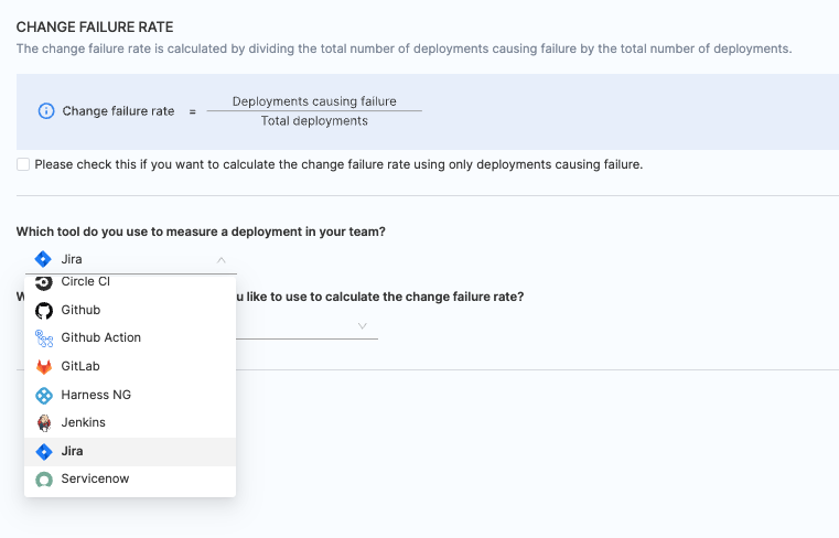 - Choose Jira as the tool that you use to measure change failure rate in your team.