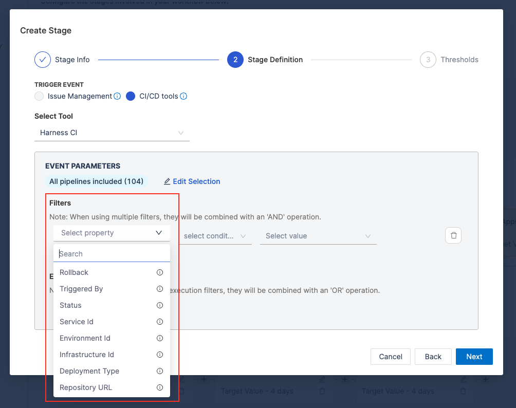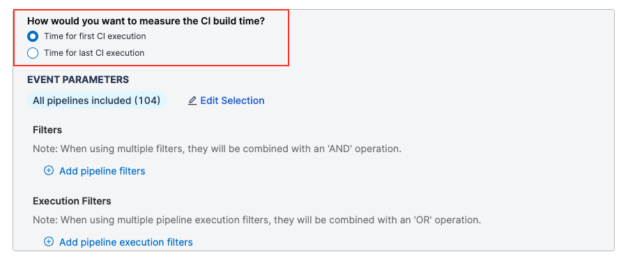 - Refine the calculation by specifying detailed filters. This filters pipelines that should contribute to the change failure rate calculations.